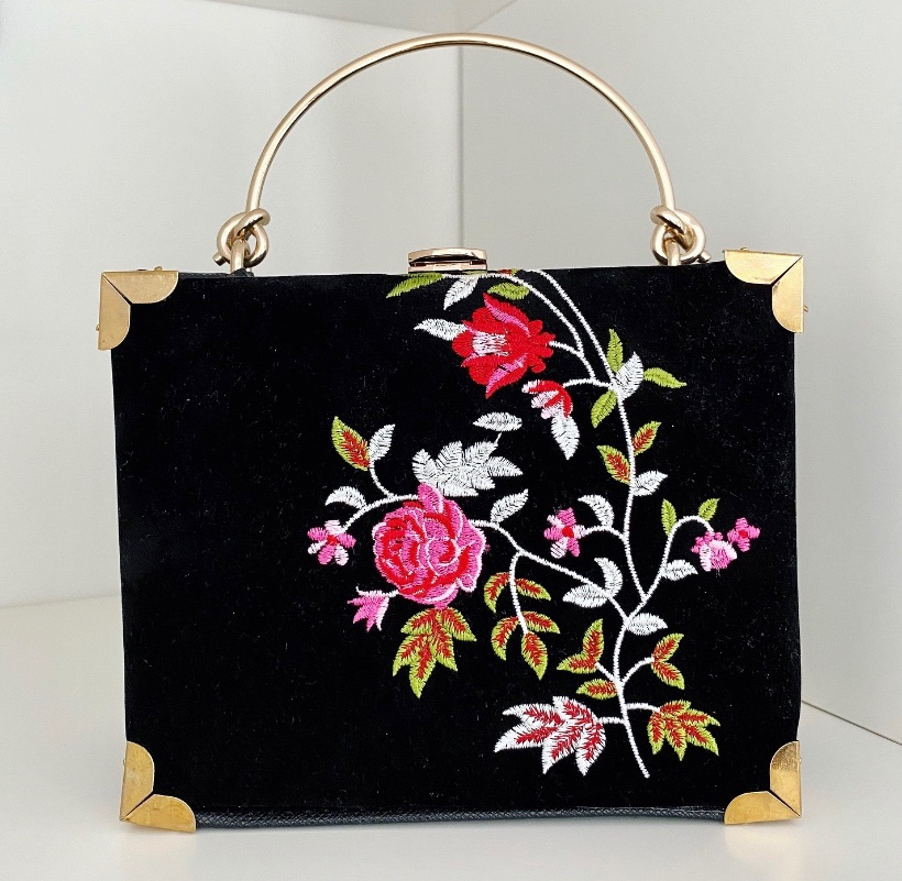 All in I spent £20. Starting with a basic square hard shelled bag with gold handle from ASOS (£11.25), some vintage box corner protectors(£7.99) and an old embroidered handbag I bought from a charity shop once, I recreated my own Aspinal handbag and love the result.