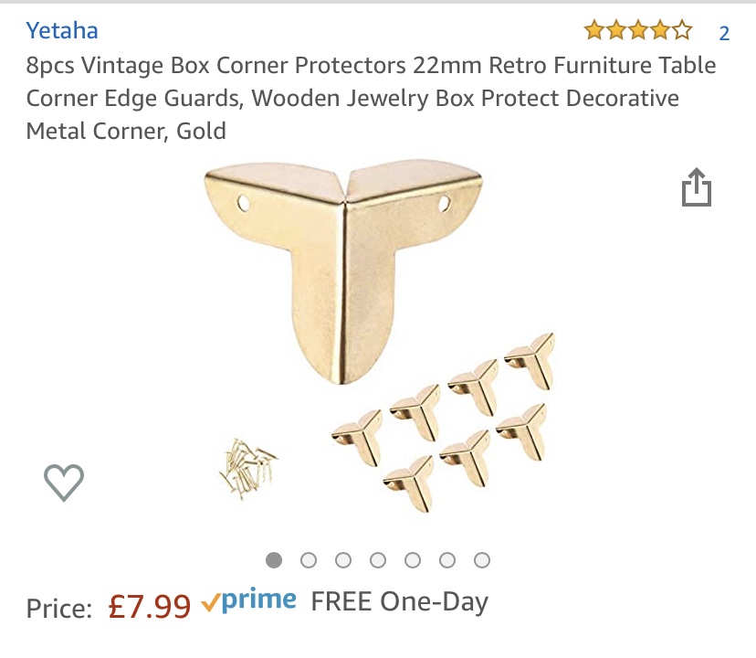 Add the vintage corner protectors and gold top handle if needed